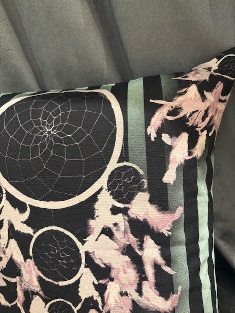Van Asch hämtar sin inspiration från viktoriansk och edwardiansk estetik, med inslag av barock, burlesk, medeltid och fantasi – något som tydligt återspeglas i detta kuddfodral.